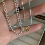 Niche Personality Ins Style S925 Sterling Silver Necklace Women’s Double Ring Diamond Plaid